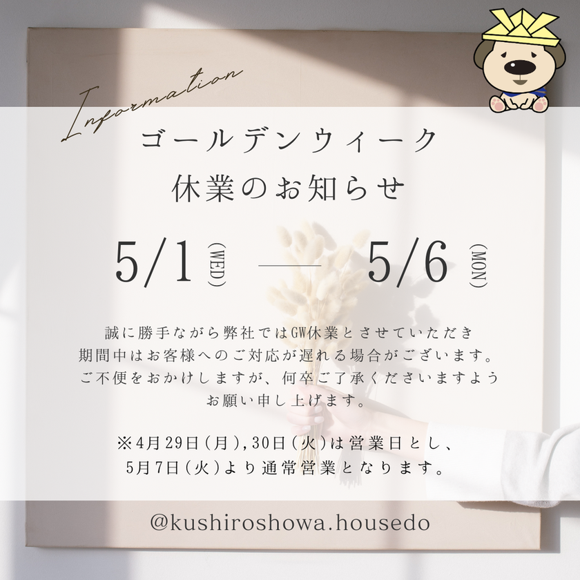 ゴールデンウィーク休業のお知らせ!!