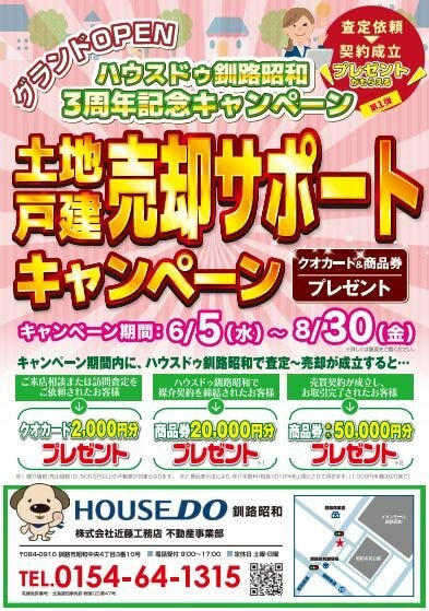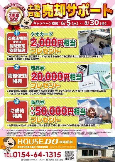 ハウスドゥ釧路昭和 OPEN3周年記念キャンペーン!!